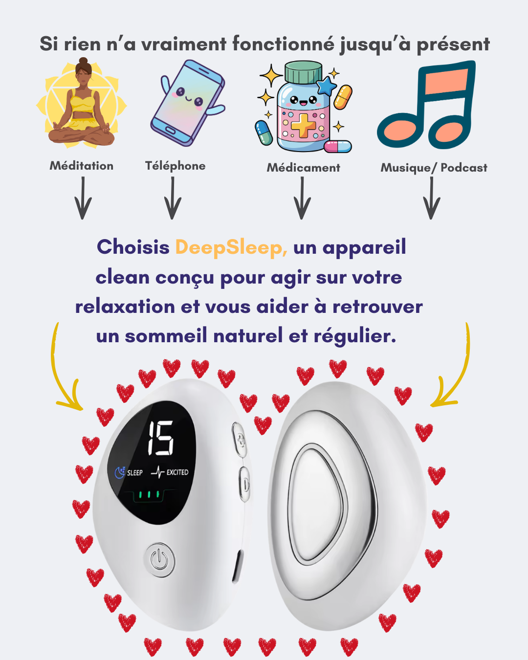 | 🔋 Portable & automatique 30 min, idéale pour ne jamais perturber votre endormissement | ✨ Énergie, vitalité & longévité | 💀 Vieillissement accéléré & maladies graves |