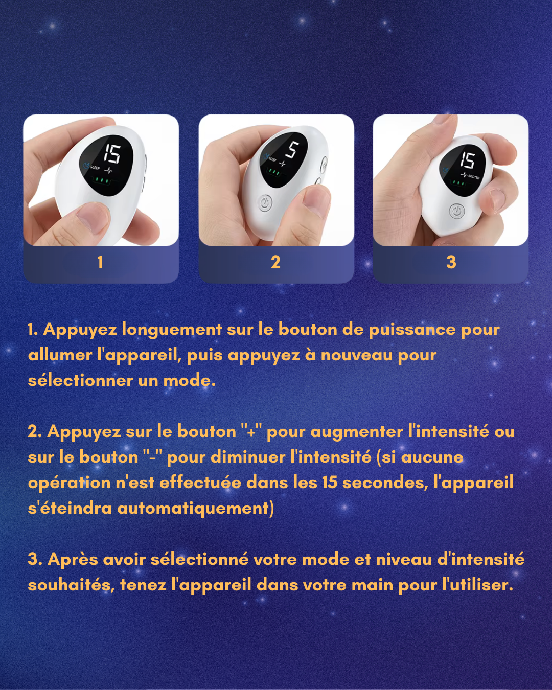 | 🔧 15 niveaux personnalisables. Adaptez l'intensité à votre sensibilité unique pour une expérience confortable et efficace dès le premier soir | ⚖️ Poids équilibré & métabolisme sain | 🍔 Prise de poids & fringales incontrôlables |